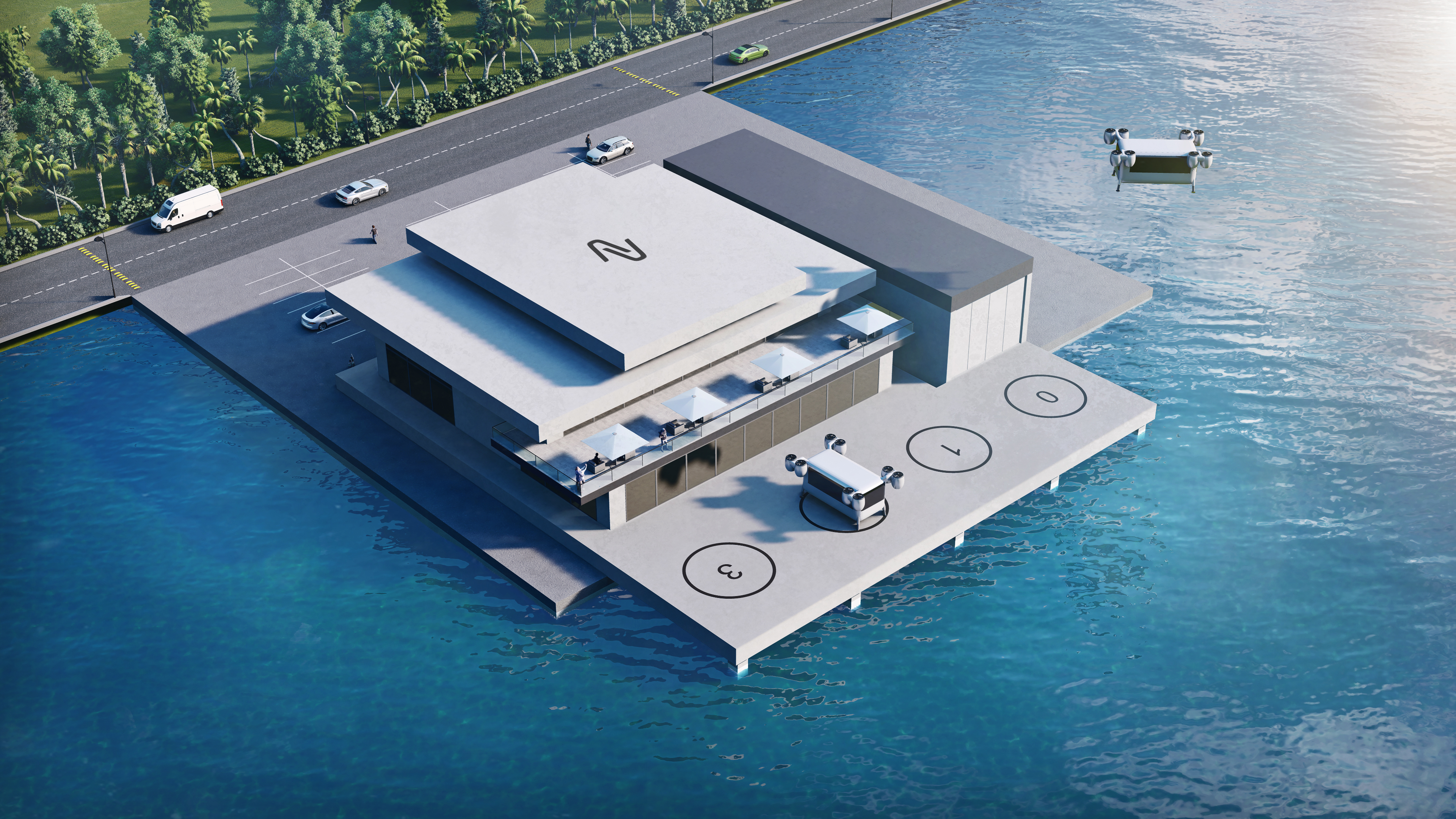 They could be built along the coast, in-land, or atop buildings in the densest of cities, enabling passengers convenient access to hop aboard Shuttle and get to their destination.